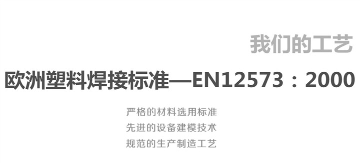 管口安裝是 后一道工序,等同于底部焊接的縮小版本,法蘭片采用管口與法蘭一體注塑成型法蘭,減少焊接點,抗擊和抗壓強度更高,再采用開孔器在罐體上開相應尺寸的口徑, 后采用德國MUNSCH手提擠出焊接。